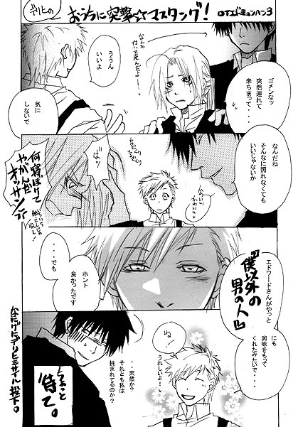 2005年秋のペーパーです。珍しくロイエドスペースに座っておりましたが、ロイエド本は既刊しかありませんでした(苦笑) ロイロイとミュンヘンで邂逅第三段。ハイデリヒとのバトル勃発か(笑)ついでにアルも参戦して三つ巴の戦いになればいいのに! この際鎧も参戦してすごいことになればいいのに!(待て)・・・・・・・・・・・ミュンヘンが燃えるよ・・・・・・・。