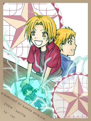 SLOW DOWN !の時雨楓さまから頂いたイラストです。 兄弟!!と叫んだ私に本当にちびたちを下さいました・・・。嬉しすぎる(>_<) 大佐人形も異常に可愛く(笑)そうか理想の人なのか(笑)覚えときます時雨さん(笑) |